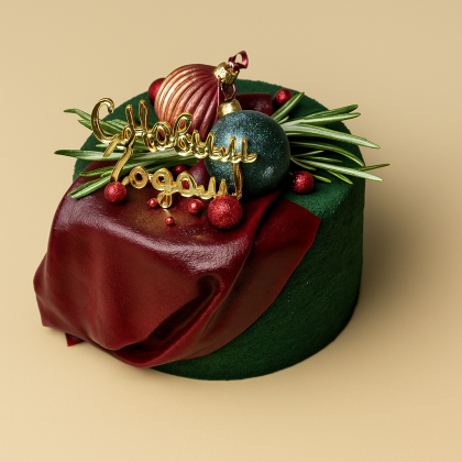 Шоколадные коржи, пропитанные карамелью. Крем-чиз. Начинка – солёная карамель с арахисом. Покрыт черным шоколадным ганашем