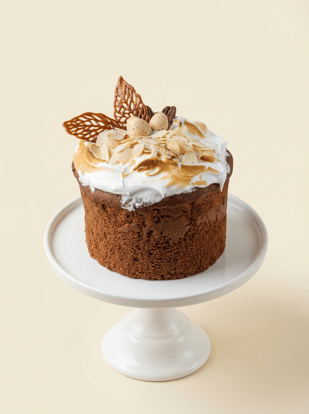 Ванильно-карамельный краффин с добавлением цедры апельсина, цукатов, грецкого ореха и арахиса, украшенный итальянской меренгой и лепестками миндаля