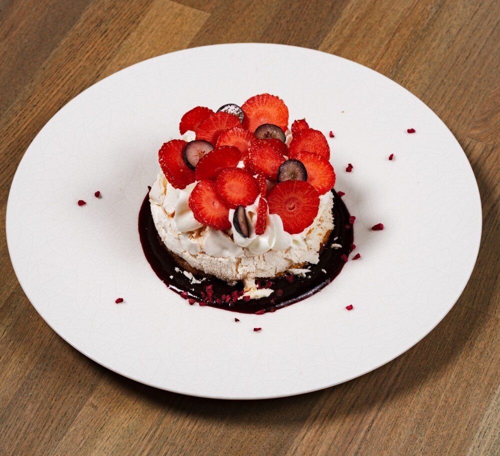 Торт Павловой с кремом маскарпоне, свежей клубникой и голубикой